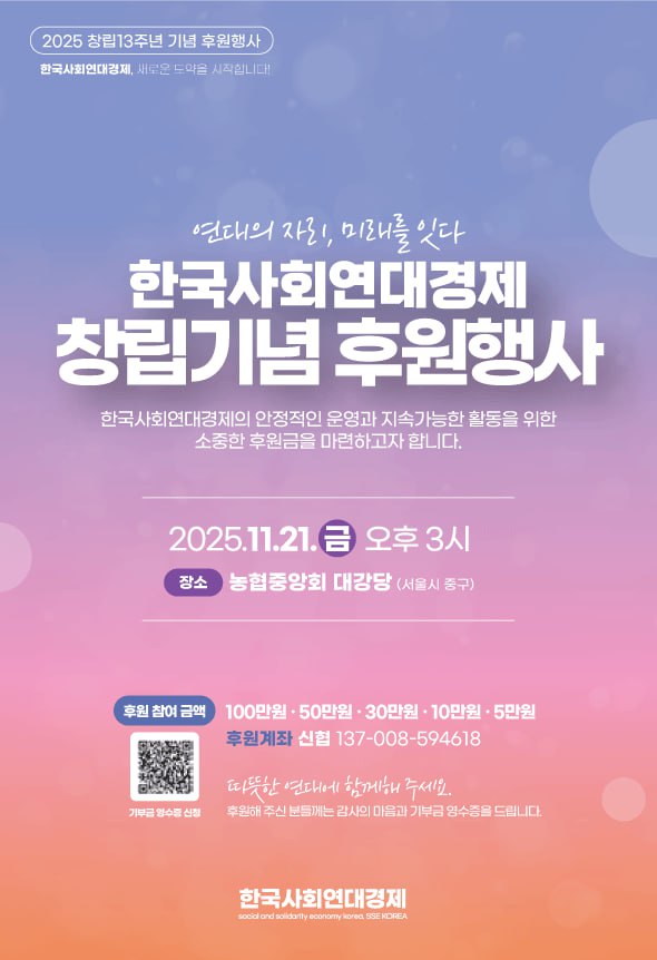 [알림] 한국사회연대경제 창립기념 후원행사(11/21)