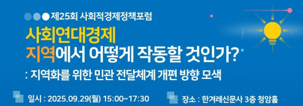 제25회 사회적경제 정책포럼: 사회연대경제 지역에서 어떻게 작동할 것인가?